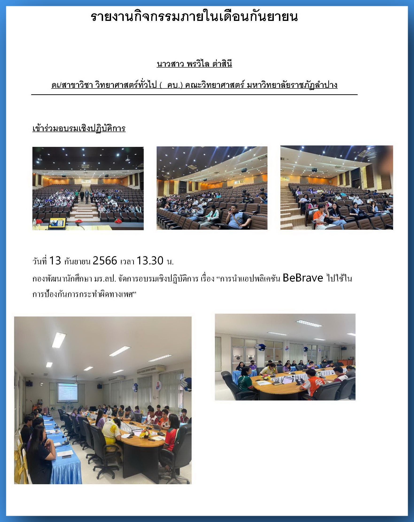 นางสาว พรวิไล ต่าสินี สาขาวิชา วิทยาศาสตร์ทั่วไป ( คบ.) คณะวิทยาศาสตร์ มหาวิทยาลัยราชภัฏลำปาง